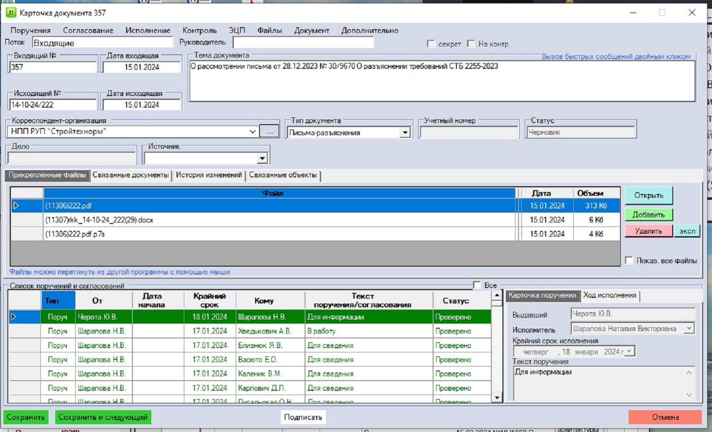 По поручениям видно, что Черота расписала письмо, но вверху карточки информация пропала.