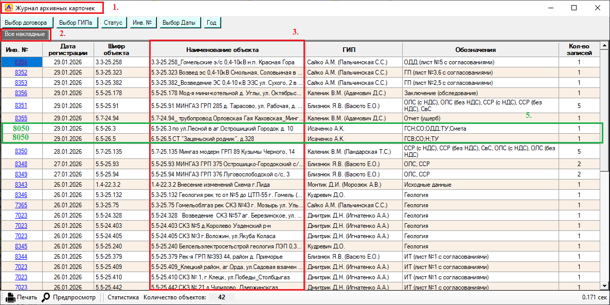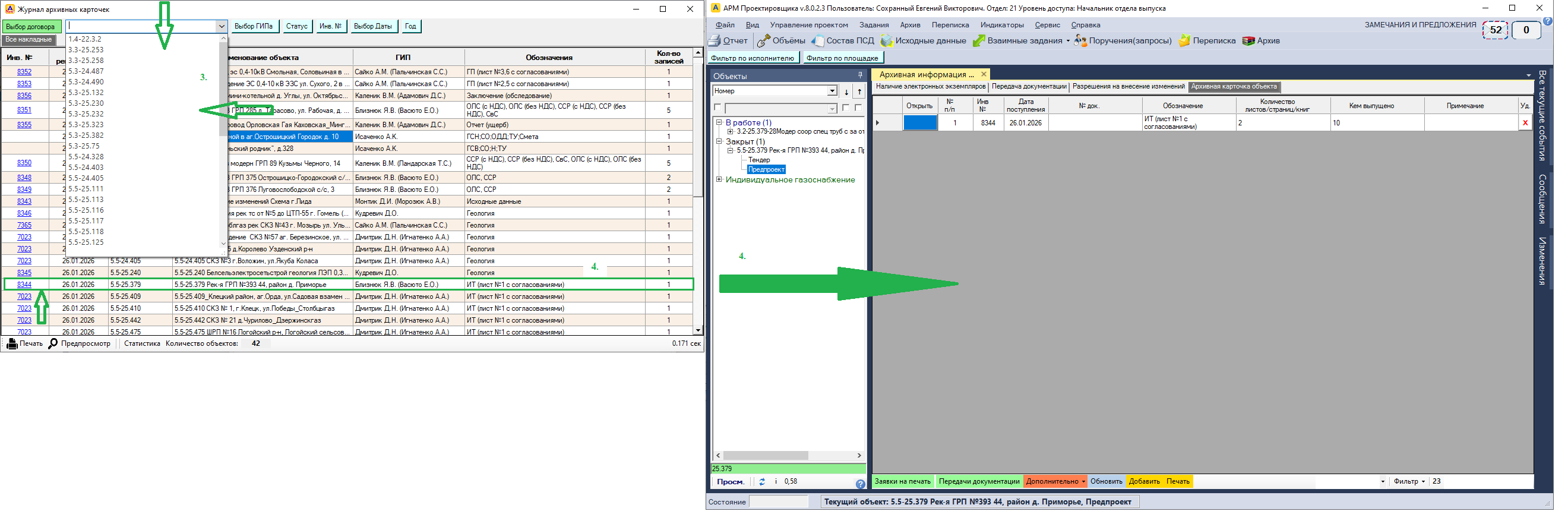 - сделать возможность в журнале при нажатии на строку (на рис. 2 обозначено № 4 дважды) переход на сам объект в архивную карточку объекта.