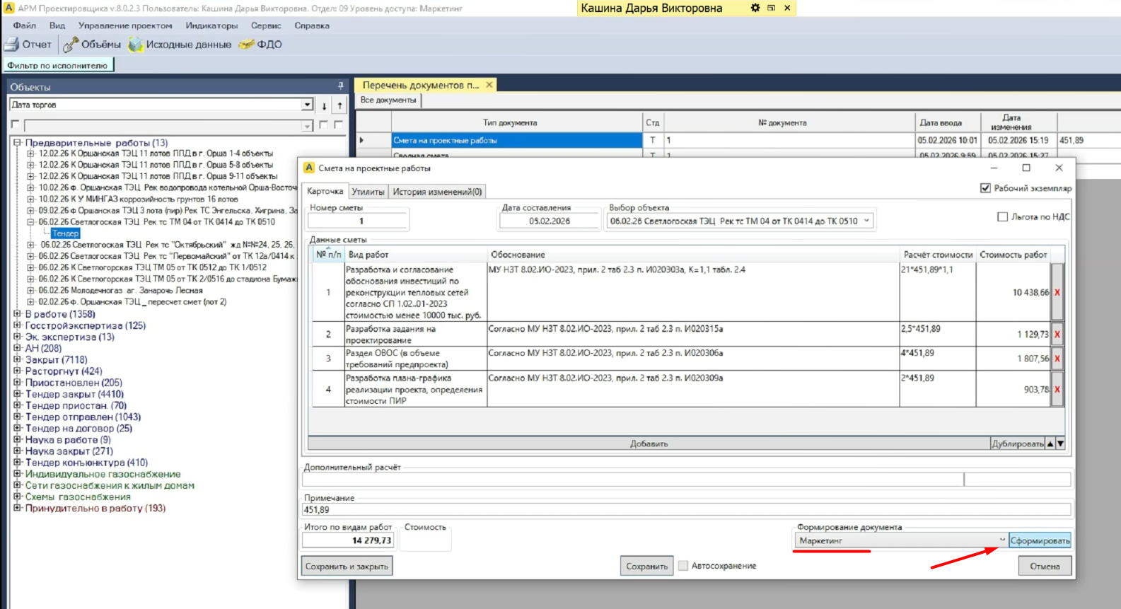 В маркетинге часто теряются файлы word со сметами, создаваемые в "АРМ Проектировщика".
