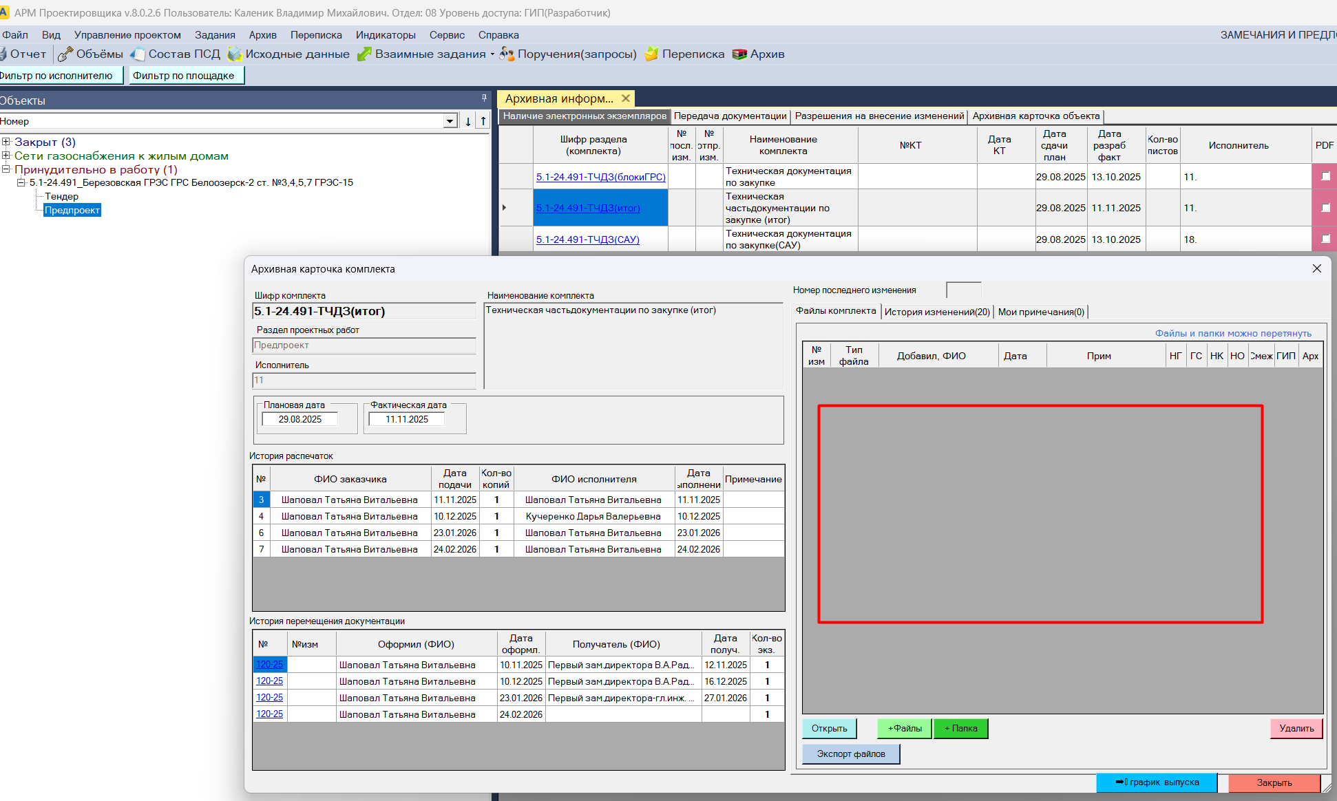 Васюто как ГИП загрузила файлы в архив. Каленик как ГИП файлы не видит.